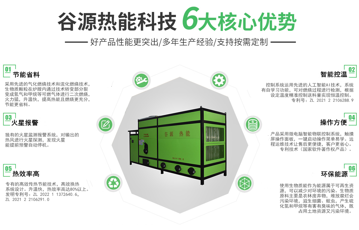 安徽谷源熱能科技有限公司坐落于大別山腳下的紅色革命老區——六安,是一家專業從事熱源產品的研發、生產、銷售、服務于一體的綜合性企業。   本公司主要生產:糧食烘干用生物質環保熱風爐、生物質稻殼熱風爐、生物質顆粒取暖爐、浴室用生物質顆粒爐、涂裝生產線用生物質顆粒爐、燃油熱風爐、天然氣熱風爐等熱源產品,公司產品采用微電腦控制,可自動點火,根據設定溫度自動進料、自動控溫。使用燃料為生物質顆粒,屬于可再生資源,相對運行成本低,節能環保。   我們以顧客為導向,一直致力于以提高產品質量、降低客戶使用成本、節能環保為研發目標,不斷創新。   公司秉承“用心服務,客戶至上;質量為本,精益求精!”的經營理念,以“節能環?!睘槭姑?,以“綠色燃料”為保障,以“先進燃燒技術”為支撐,繼續推進節能環保事業不斷向前發展。為改善能源結構,打造低碳城市,創建環境美好資源節能型社會,做出不懈努力。我們愿意與您真誠合作、共創雙贏,讓我們攜手共創輝煌的明天。竭誠歡迎各界朋友光臨惠顧!